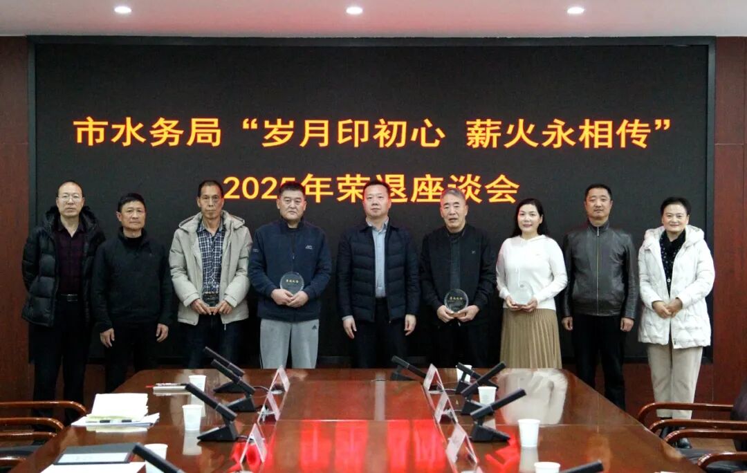 12月12日,市水务局举办“岁月印初心 薪火永相传”2025年荣退座谈会,局党组书记、局长宋彪参加会议并讲话,局班子成员、各科室(单位)负责人以及退休干部崔小守、张国宏、刘爱萍、闫顺喜参加会议。